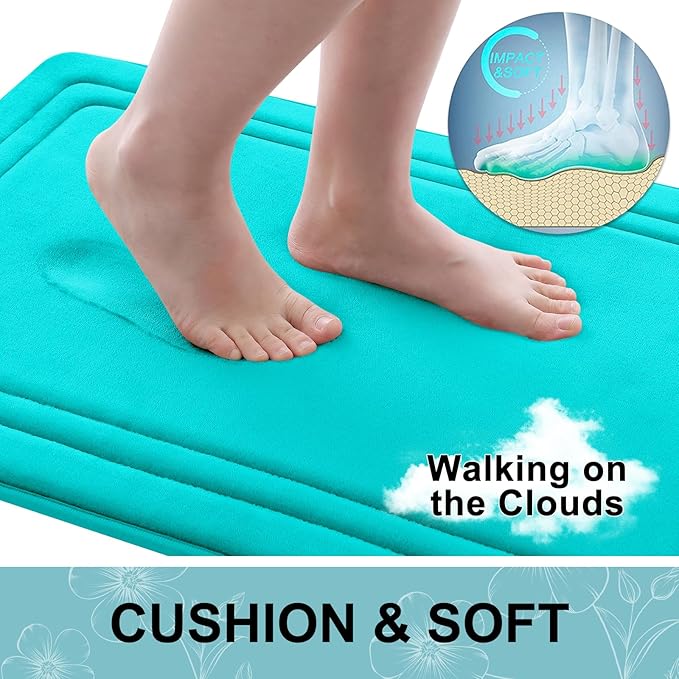Grandaily Memory Foam Bath Mat Rug 24x16, Ultra Soft, Non-Slip and Absorbent Bathroom Rugs, Machine Wash Dry, Comfortable Bath Carpet for Bathroom Floor, Tub and Shower, Teal