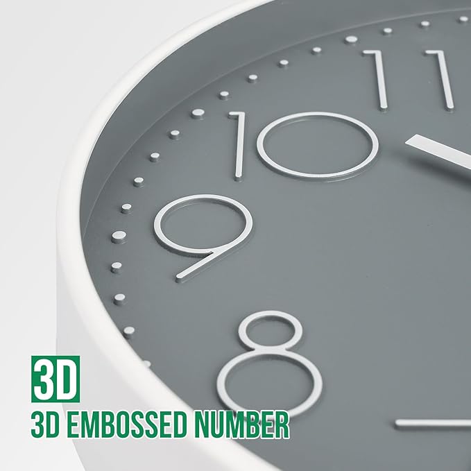 Wall Clock 12 Inch Non-Ticking Silent Modern Simple Style Round Decor Clock Gray Stereoscopic Dial Quartz Wall Clocks for Home/Office/School/Living Room/Bedroom/Kitchen