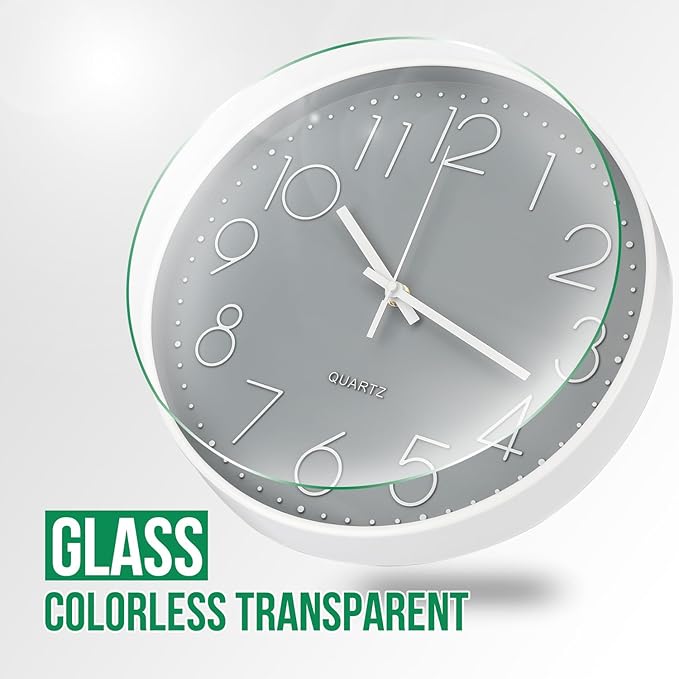 Wall Clock 10 Inch Non-Ticking Silent Modern Simple Style Round Decor Clock Gray Stereoscopic Dial Quartz Wall Clocks for Home/Office/School/Living Room/Bedroom/Kitchen