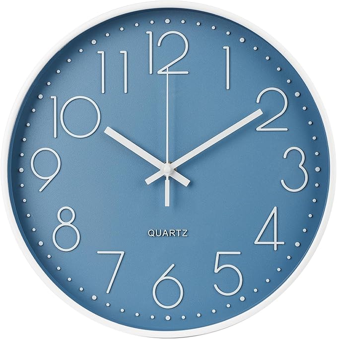 Wall Clock 12 Inch Non-Ticking Silent Modern Simple Style Round Decor Clock Cerulean Stereoscopic Dial Quartz Wall Clocks for Home/Office/School/Living Room/Bedroom/Kitchen