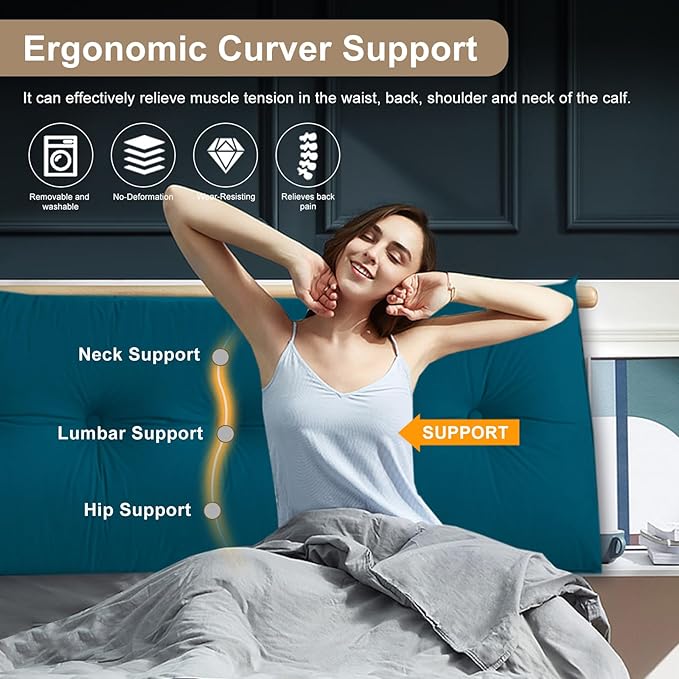 - MULTIFUNCTIONAL APPLICATION: There is one side pocket of the headboard wedge, which can be used to put remote control mobile phones and other items. Our long backrest support bolster cushion not only decorate the bed and act as a headboard, but also fill in the gaps and keep items from falling out. You can use it as a support bolster cushion, which provide back support for your family when reading, playing games, and taking a nap. It's also popular in college dorm beds.