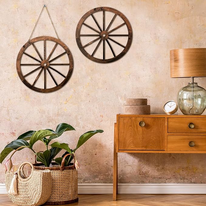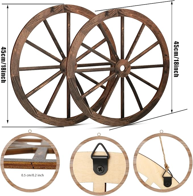- Adequate quantities meet your needs: you will receive 2 pieces wooden wagon wheel decors in this package, ample amounts easily satisfying your daily decorating needs and DIY requirements