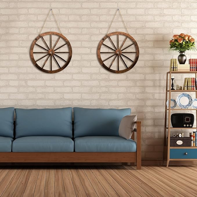 - Easy to use: there is a triangular hook on the back of each rustic wagon wheel decor, so you can easily use it to choose wherever you want to hang without nails; At the same time, it is very thin and light, making it easier to install. Also the decors can keep harmonious with your house styles, which can bring refreshed feelings