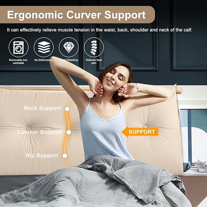 - MULTIFUNCTIONAL APPLICATION: There is one side pocket of the headboard wedge, which can be used to put remote control mobile phones and other items. Our long backrest support bolster cushion not only decorate the bed and act as a headboard, but also fill in the gaps and keep items from falling out. You can use it as a support bolster cushion, which provide back support for your family when reading, playing games, and taking a nap. It's also popular in college dorm beds.