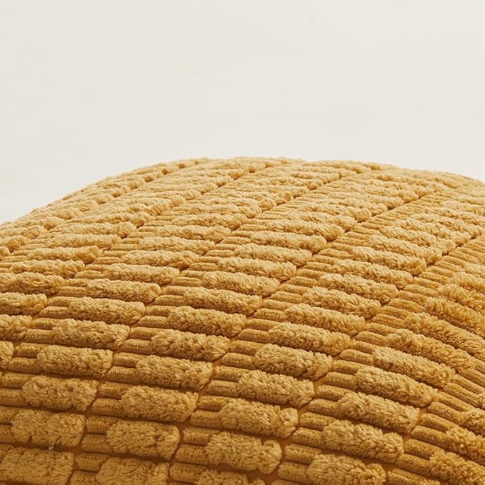 Fancy Homi 4 Packs Mustard Yellow Decorative Throw Pillow Covers 12x20 Inch for Living Room Couch Bed Sofa, Rustic Farmhouse Boho Home Decor, Soft Plush Striped Corduroy Square Cushion Case 30x50 cm