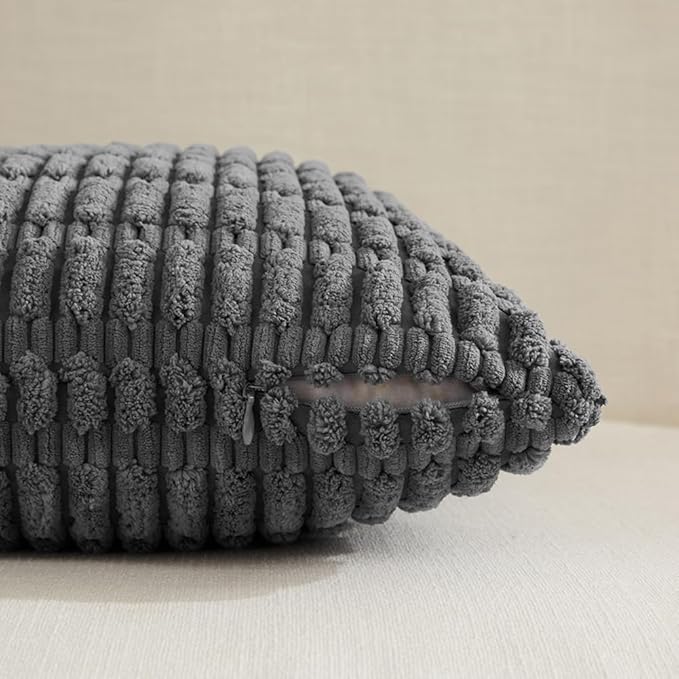 Fancy Homi 4 Packs Dark Grey Decorative Throw Pillow Covers 22x22 Inch for Couch Bed, Rustic Modern Farmhouse Boho Home Decor, Soft Plush Corduroy Gray Cute Square Accent Cushion Case 55x55 cm