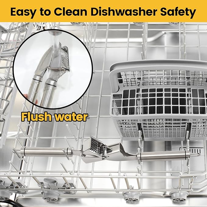 - - Easy To Clean: Dishwasher safe and can also be rinsed with water. Our stainless steel garlic press comes with a cleaning brush to avoid hard-to-remove garlic odor on your hands