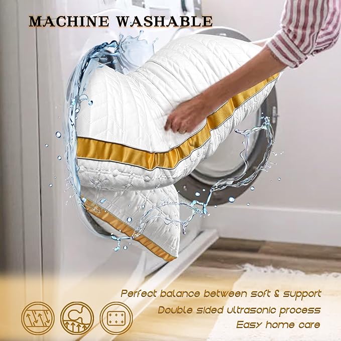 - Sealed Packaging and Washing Tips: Our pillows set of 2 come with vacuum-sealed for shipping, please leave 48 - 72 hours for the pillows to get full recovery before enjoying them. They're machine washable with tumble dry low, no-shift filling after washing, easy to maintain and always looks new even after repeated washing