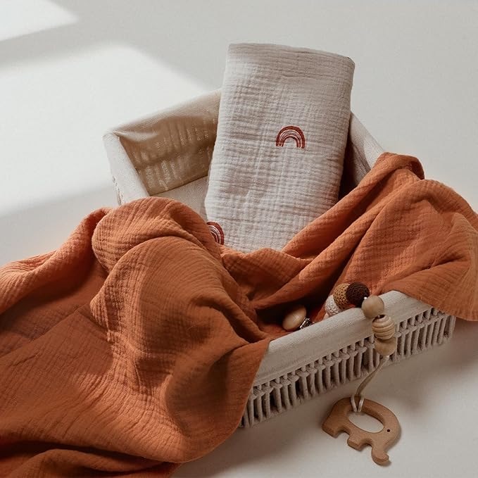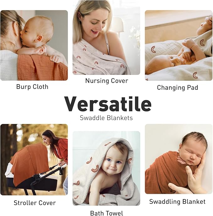 - SOFT & BREATHABLE: Our muslin swaddle blankets are made of 100% cotton (Muslin). The best pure natural material without harmful chemicals for babies, for maximum breathable with skin-friendly soft touch, which is gentle on baby's skin. And means they can keep your little one warm and cozy in cooler weather, let their skin breathe in warmer weather