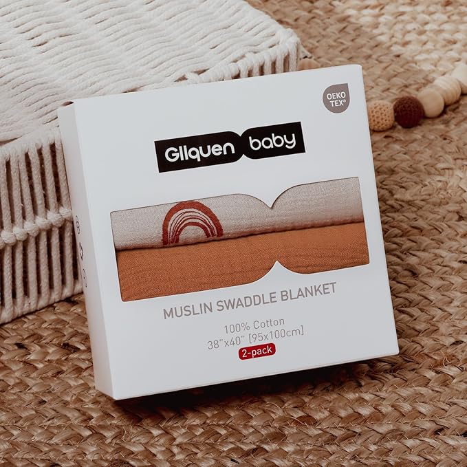GLLQUEN BABY Muslin Swaddle Blankets for Boys and Girls, 2-Pack Baby Blankets for Girl Boy, Baby Receiving Blanket, Baby Swaddle Blanket Unisex, Newborn Essentials, Registry & Gift