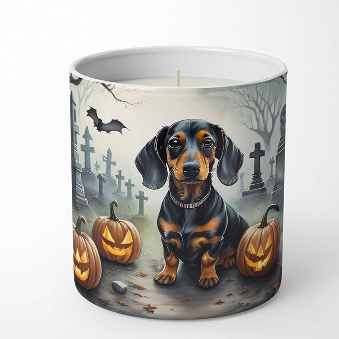 Caroline's Treasures DAC2036CDL Dachshund Spooky Halloween Decorative Soy Candle Nature Soy Wax Essential Oil Home Decor Ideal for Bedroom Kitchen Bath Office Gift, 10 oz