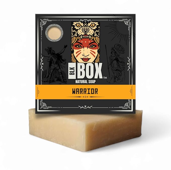 Black Box USA MADE 5oz Men's Natural Bar Soap Made from Moisturizing Natural Oils - Handmade Cold Process Soap No Harsh Chemicals - Citrus, Floral & Deep Musks (WARRIOR)