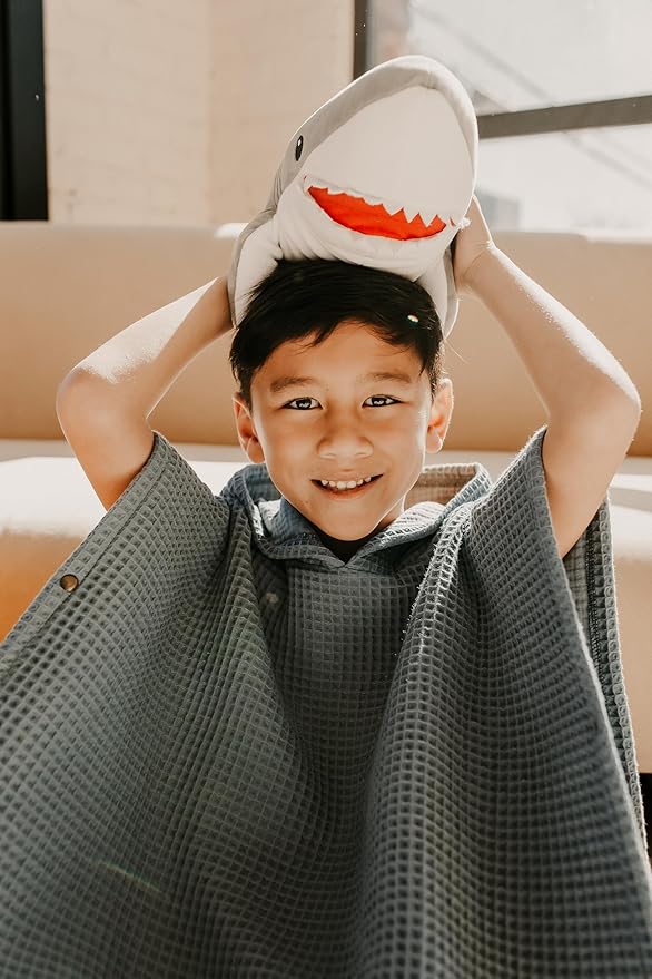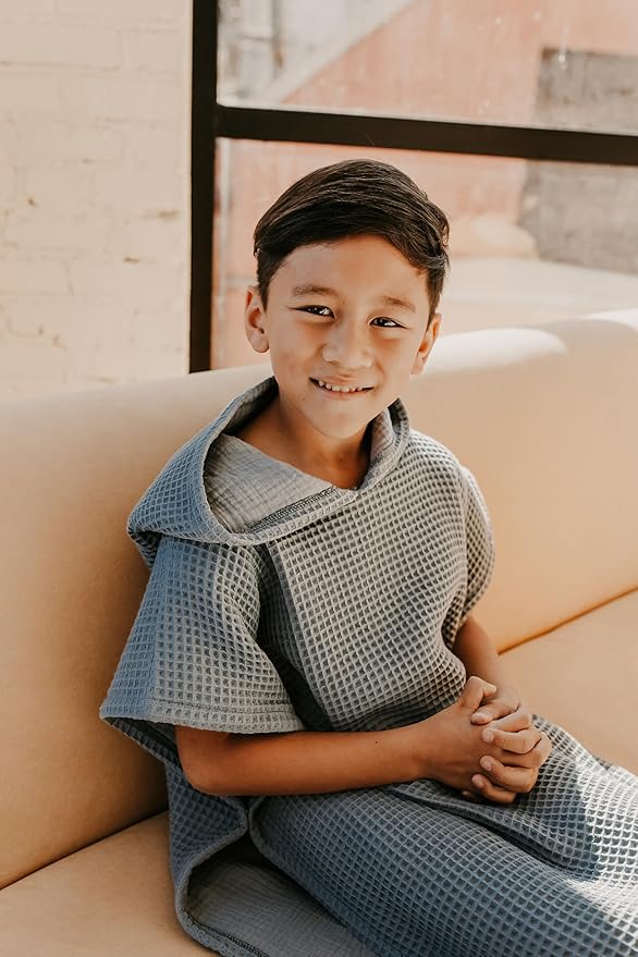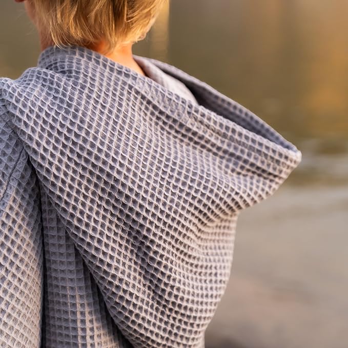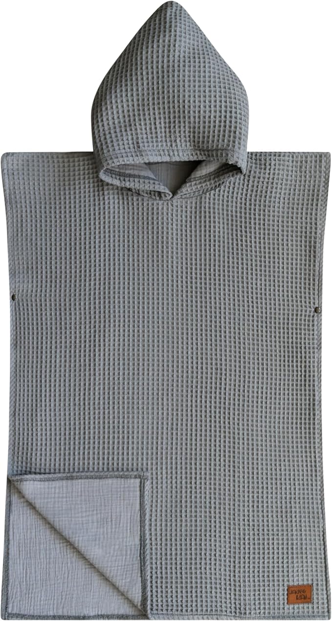 Hooded Towel for Kids | Snaps into a Poncho | Organic Cotton Waffle | Lightweight and Absorbent | Bath, Beach, and Pool | Multiple Colors | (Medium (3-6 Yrs), Dove)