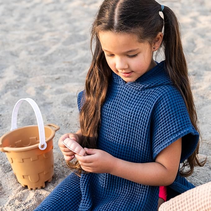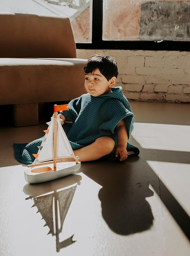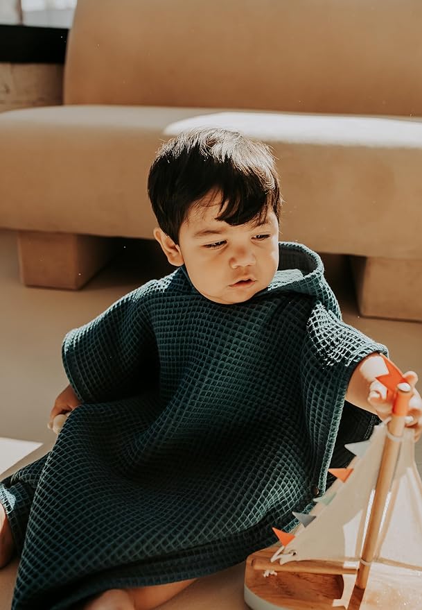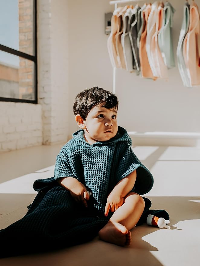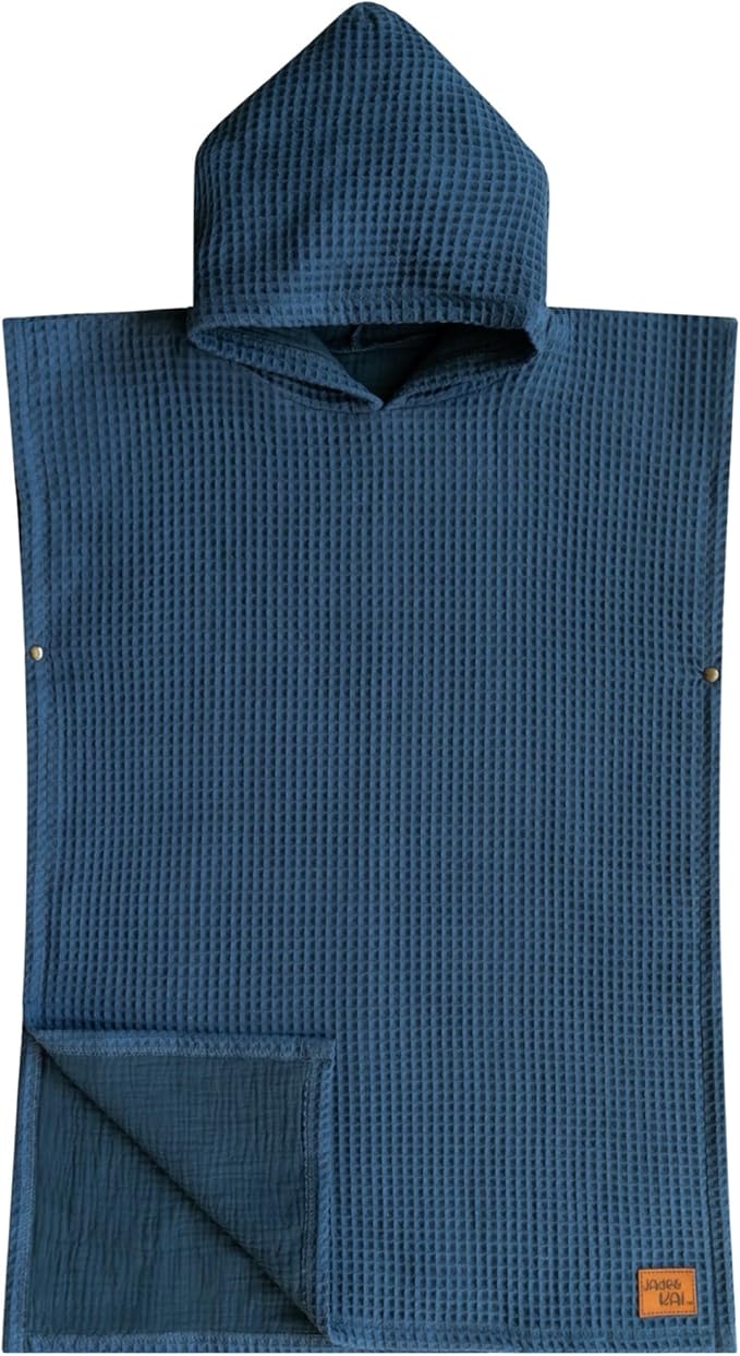 Hooded Towel for Babies + Toddlers | Snaps into a Poncho | Organic Cotton Waffle | Lighweight and Absorbent | Bath, Beach, and Pool | Multiple Colors (Small (0-3 Yrs), January Aqua)