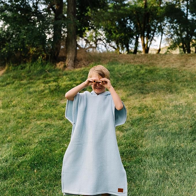 Hooded Towel for Babies + Toddlers | Snaps into a Poncho | Organic Cotton Waffle | Lighweight and Absorbent | Bath, Beach, and Pool | Multiple Colors (Small (0-3 Yrs), June Breeze)