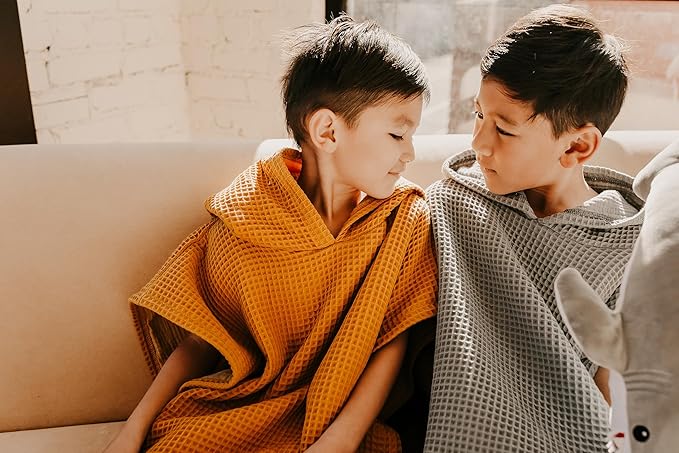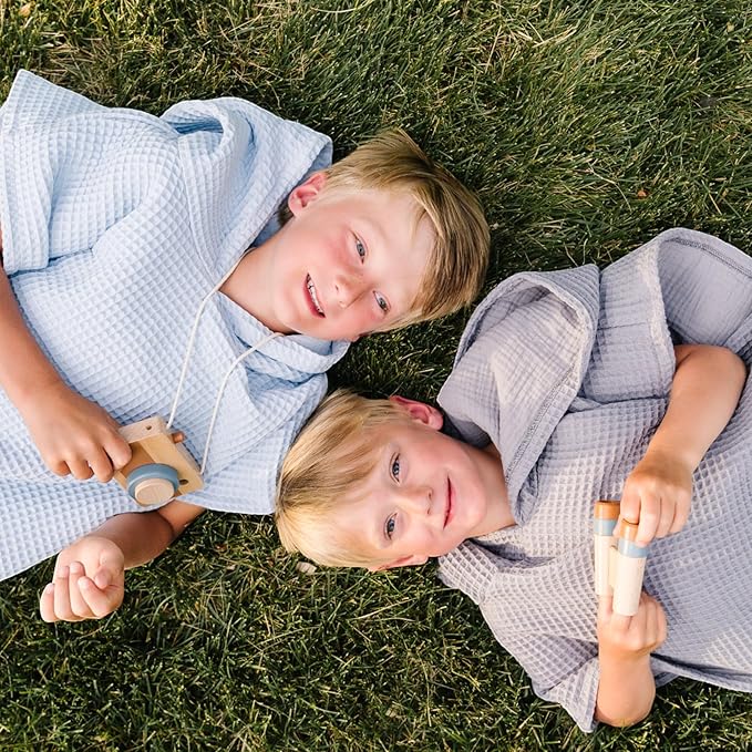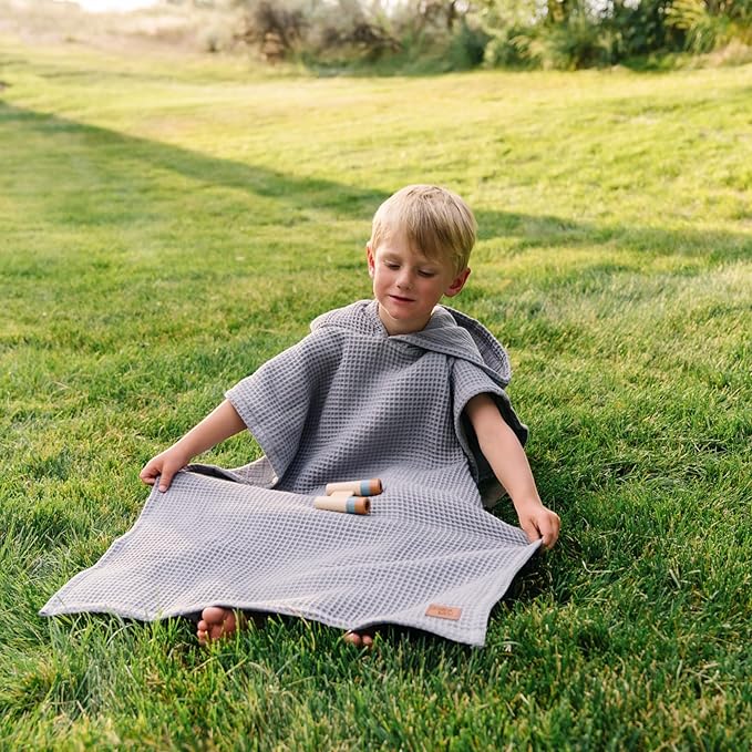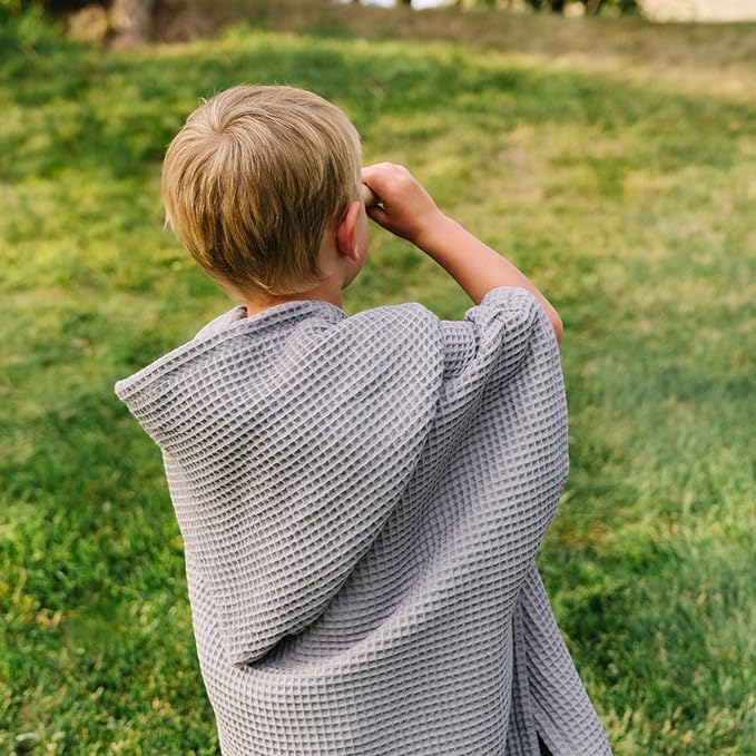 Hooded Towel for Kids | Snaps into a Poncho | Organic Cotton Waffle | Lightweight and Absorbent | Bath, Beach, and Pool | Multiple Colors | (Large (6-10 Yrs), Dove)