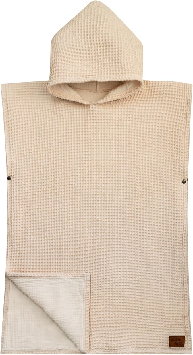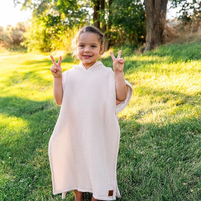 Hooded Towel for Kids | Snaps into a Poncho | Organic Cotton Waffle | Lightweight and Absorbent | Bath, Beach, and Pool | Multiple Colors | (Large (6-10 Yrs), Cloud)