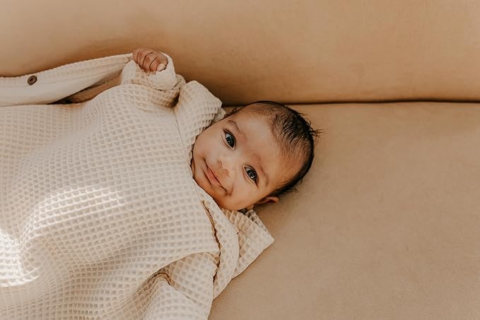 - WEAVED COTTON + INNER MUSLIN LINING: Weaved Organic Cotton Waffle Fabric + Soft Inner Cotton Muslin Lining