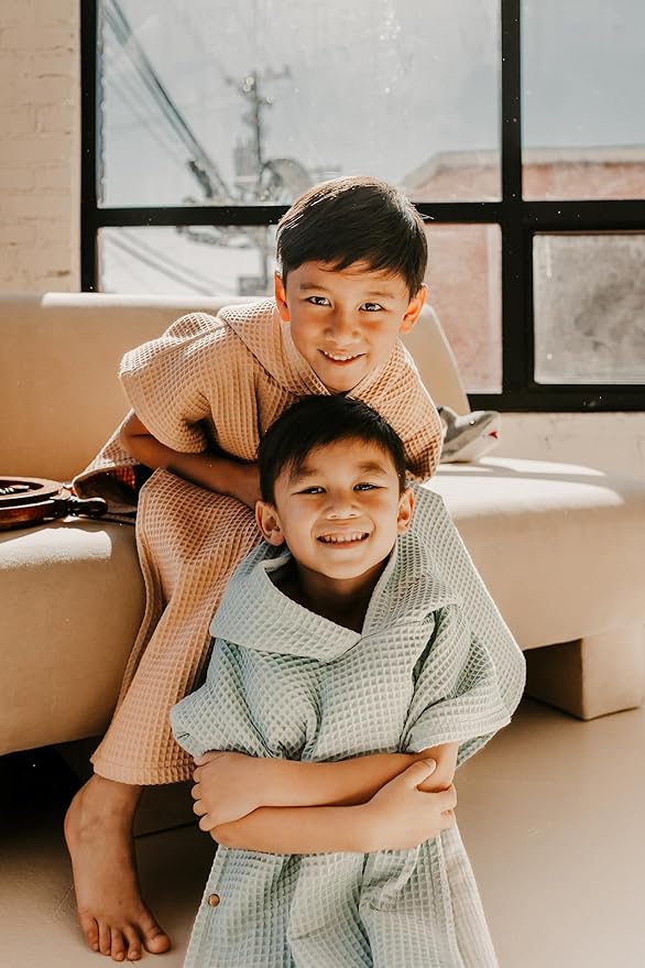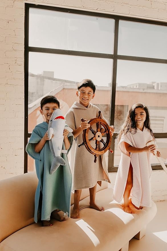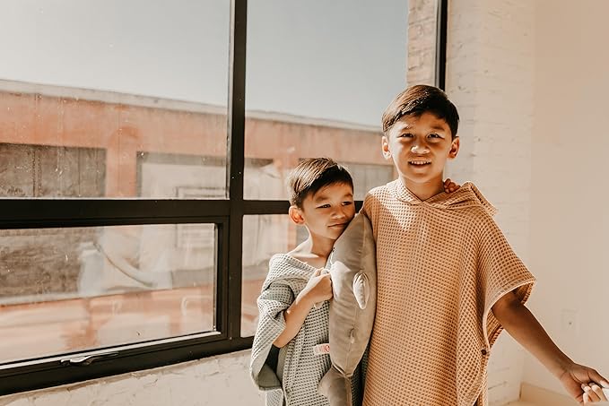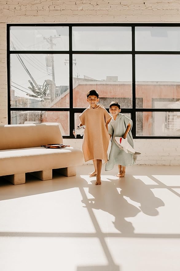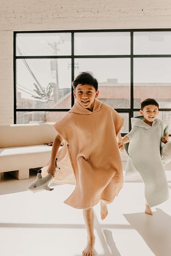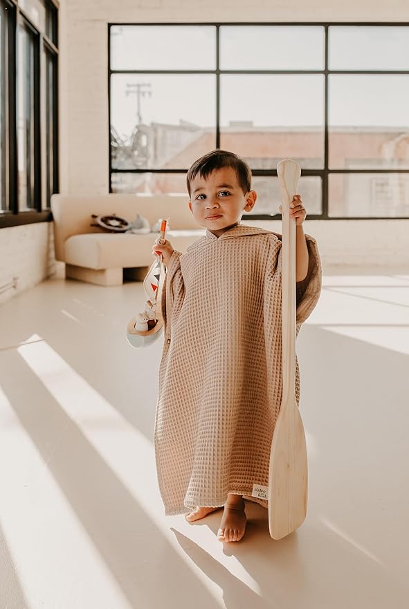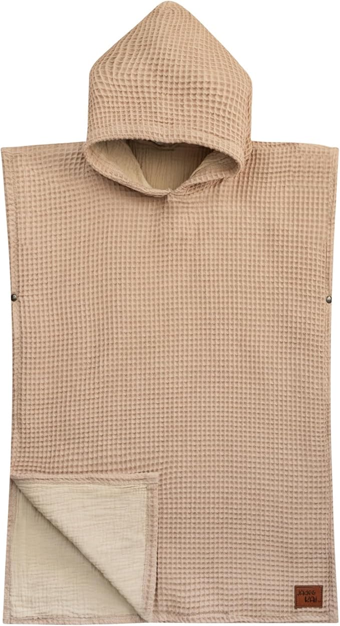 Hooded Towel for Kids | Snaps into a Poncho | Organic Cotton Waffle | Lightweight and Absorbent | Bath, Beach, and Pool | Multiple Colors | (Large (6-10 Yrs), Sand)