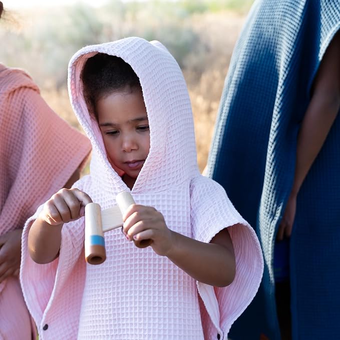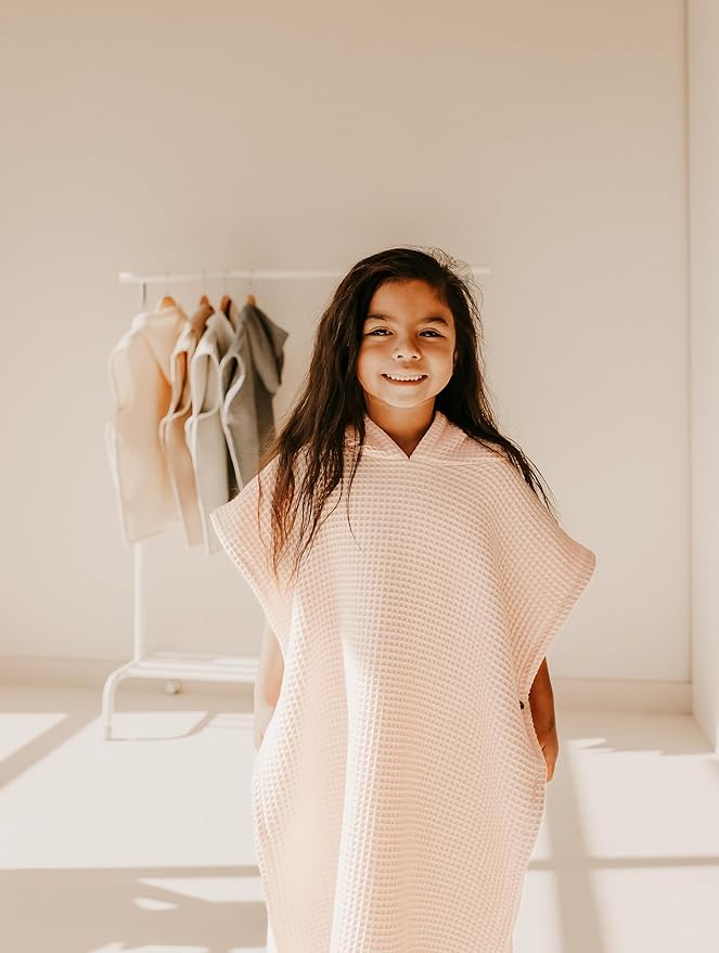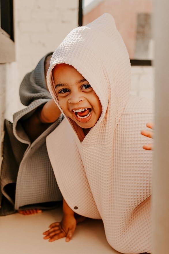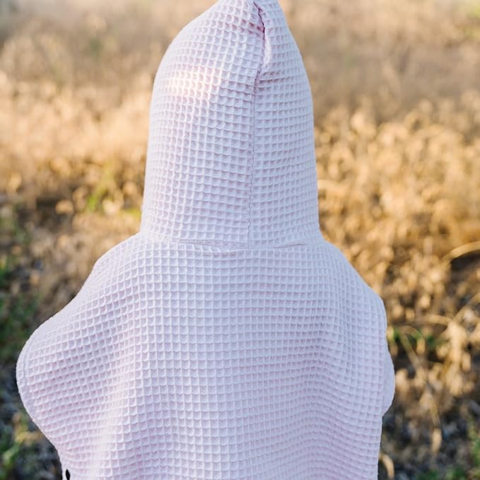 Hooded Towel for Kids | Snaps into a Poncho | Organic Cotton Waffle | Lightweight and Absorbent | Bath, Beach, and Pool | Multiple Colors | (Medium (3-6 Yrs), Cherry Blossom)