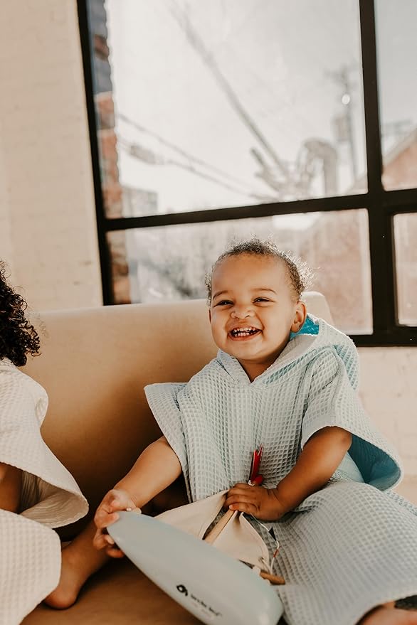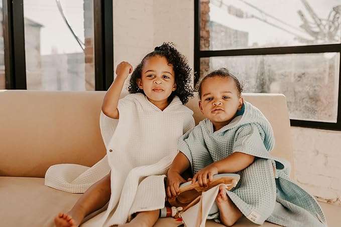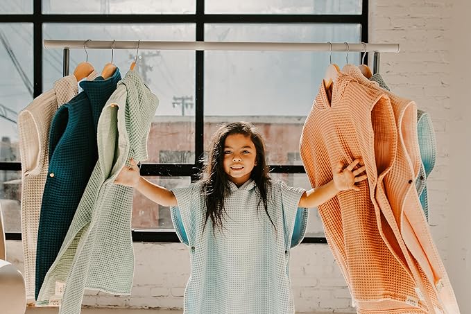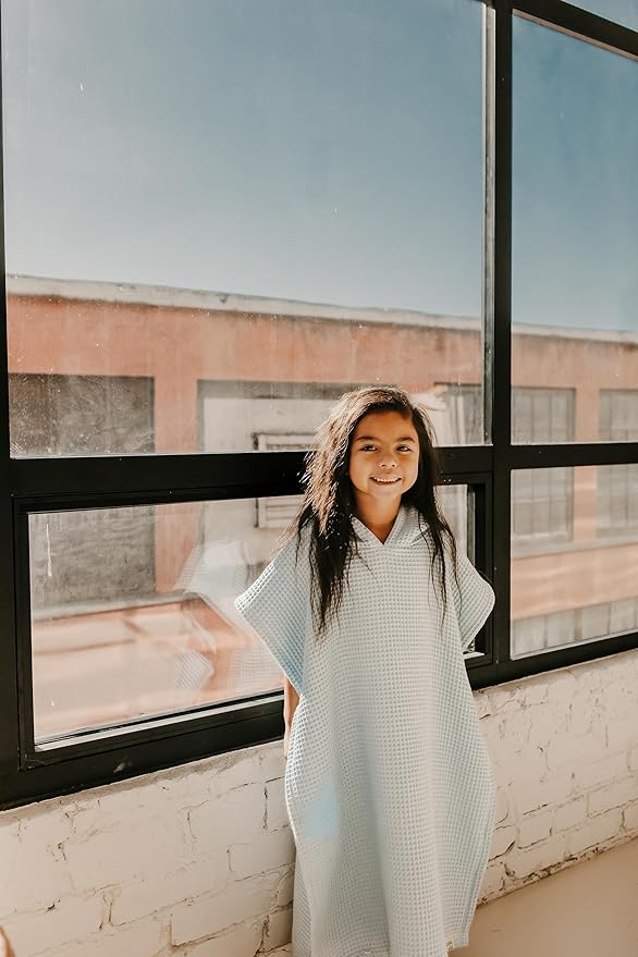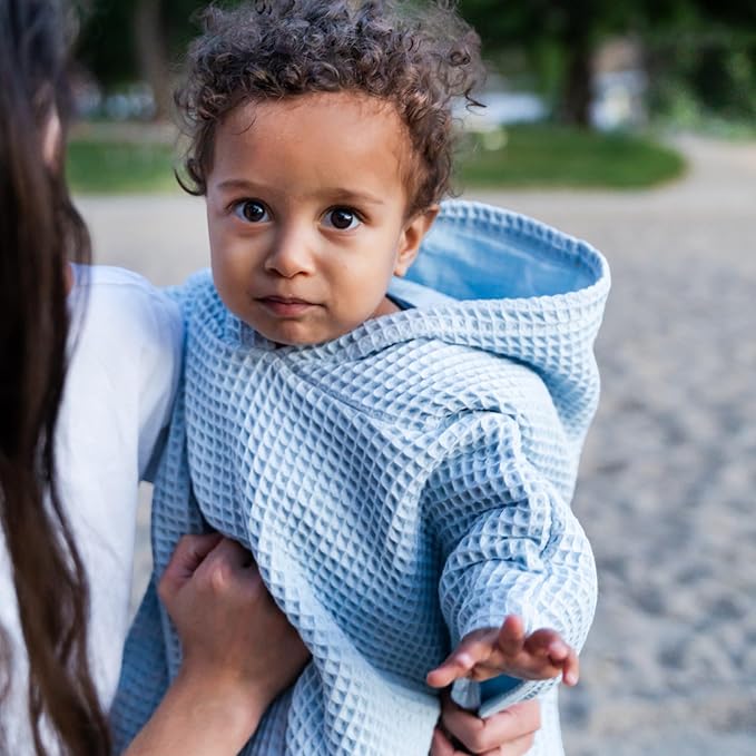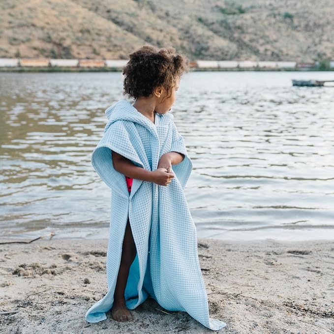 Hooded Towel for Kids | Snaps into a Poncho | Organic Cotton Waffle | Lightweight and Absorbent | Bath, Beach, and Pool | Multiple Colors | (Large (6-10 Yrs), Lagoon)