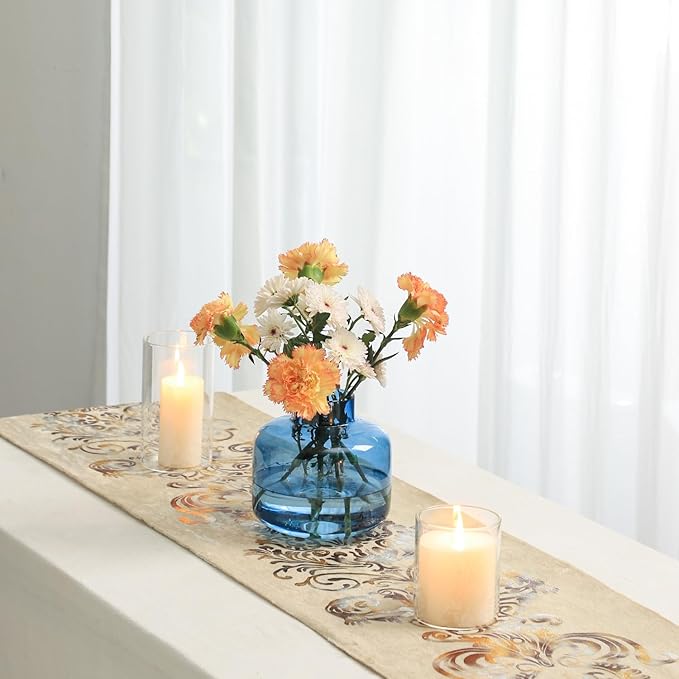 - FLOWER SELECTION: With a small opening, this blue glass vase must be paired with short-stemmed flowers, such as roses, tulips, lilies, and gladiolus, to create a wonderful centerpiece.
