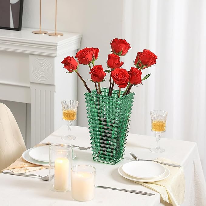 MCMCNCUIU Crystal Vase, Large Crystal Vases for Flowers, Large Flower Vase, Modern Green Vases for Living Room, Bedroom, Kitchen, Dining Table, Mantle, Wedding, 11 Inches