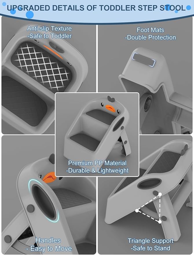 - 3 IN 1 TODDLERS STEP STOOL HELPER: This step stool is great for toddlers who want to help cook, “help” do dishes in your kitchen; lightweight yet sturdy, great for your kids to move it between the toilet for potty training to the sink for hand washing and brushing teeth in your bathroom. Also help them climb on the bed without any problems and just snuggle up next to you. No more lifting and he is very happy taking care of himself.