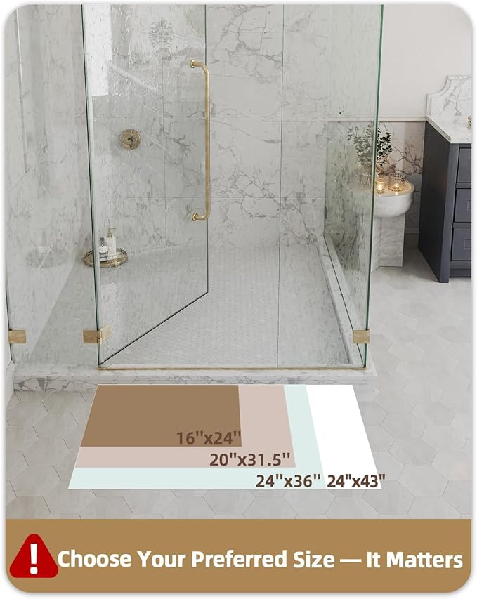 - Stylish and Practical: Available in a range of colors and with a simple design, this shower mat not only serves its functional purpose but also complements bathroom decor nicely, adding a touch of style to your space; having several sizes to choose from, standard, large or runner, you can easily find a perfect size to fit in front of the single or double sinks, showers, bathtubs, vanities and more