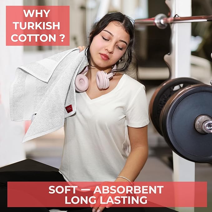 - [ SET INCLUDES ]: Our towel set includes 4 x Washcloths (13x13 inches). These sizes of our bathroom towels are both functional and perfect for everyday usage and give your bathrooms modern look with its eight color options. Our wash cloths are also suitable for gym, beach, spa, hotel, travel and more.