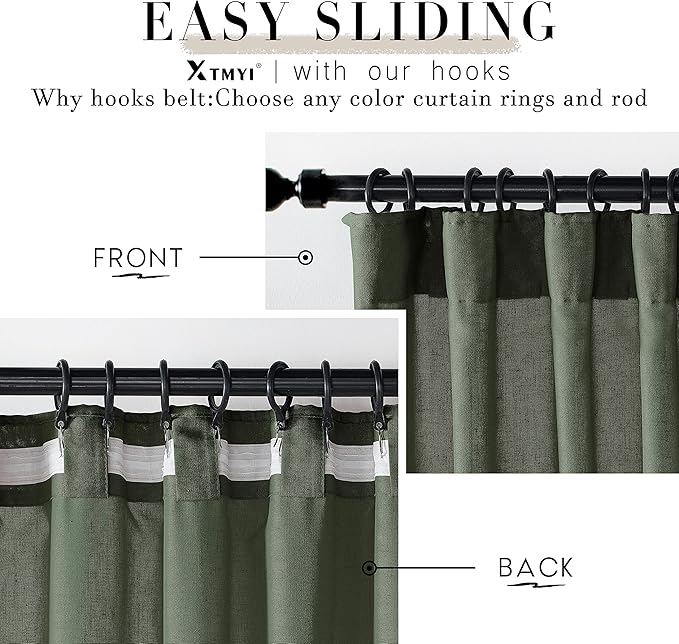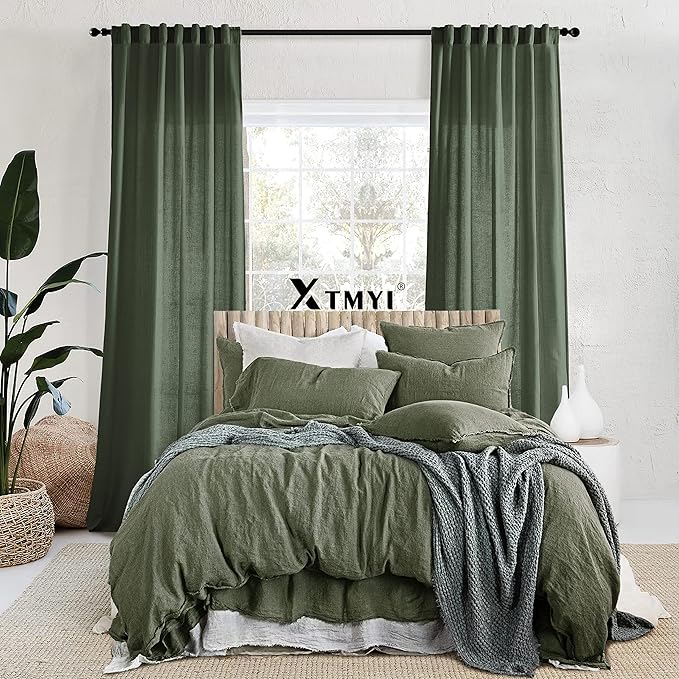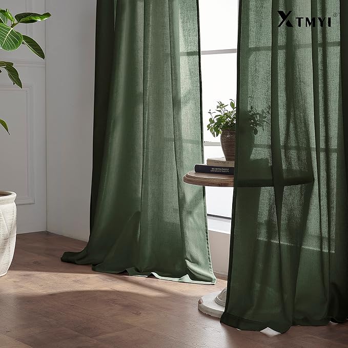 XTMYI 68 Inch Curtains 2 Panel Set,Linen Boho Semi Sheer Curtains for Bedroom Living Room,40x68 in Long,Olive Green