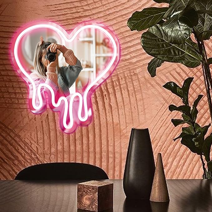 - Crystal Clear Reflection: Featuring a silver acrylic mirror baseplate and flexible pink silicone tubes, this neon sign not only illuminates but also serves as a mirror. It is safe, noise-free, for practical use.