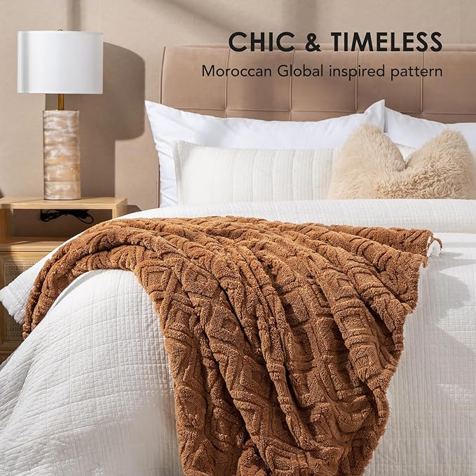 EVERGRACE Jacquard Boho Sherpa Fleece Throw Blanket for Couch, Super Soft Cozy Fuzzy Plush Blankets for All Seasons, Reversible Thick Warm Blanket for Bed, Sofa, Living Room, Burnt Orange, 50" x 60"