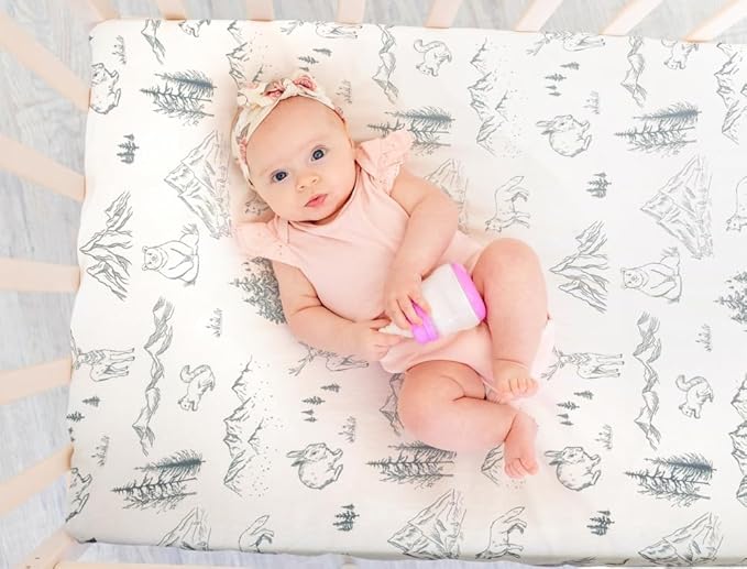 - WOODLAND DESIGN: The fitted sheets and easy to use, especial and beautiful design adds a cozy and comfortable look for little baby?s room. And other woodland nursery bedding accessories: crib sheets, portable crib sheets and changing pad covers
