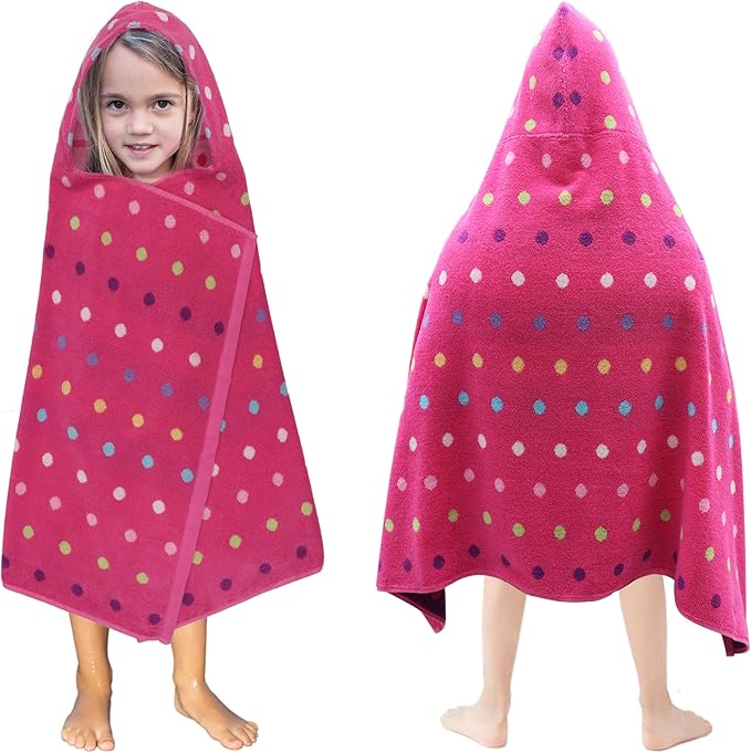 - Luxurious Soft and Cuddly: Our towels are made from 100% combed cotton terry jacquard and yarn-dyed for vibrant, long-lasting colors. Each is pre-washed too, so they feel fluffy and soft! The plush pile on our hooded towel is very soft to the touch and gentle on your child's delicate skin. The breathable fabric ensures maximum comfort, absorbency, and durability. This soft, comfortable, and cuddly towel with a hood keeps children warm and dry after bathing, swimming, or showering.