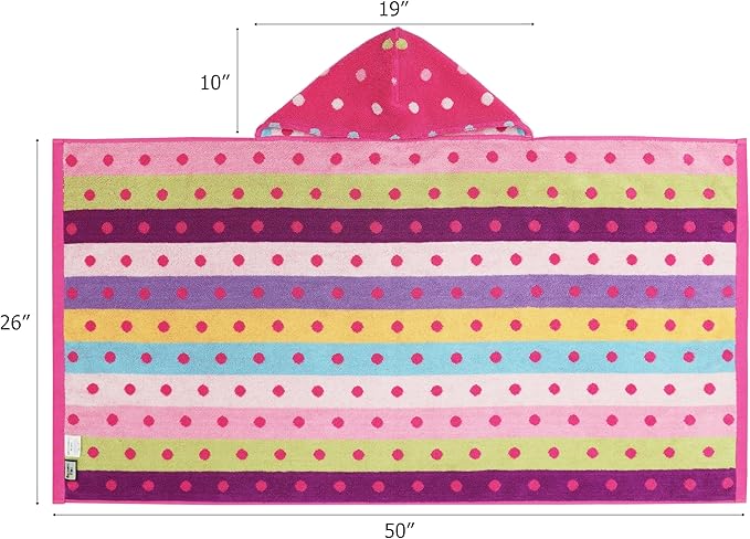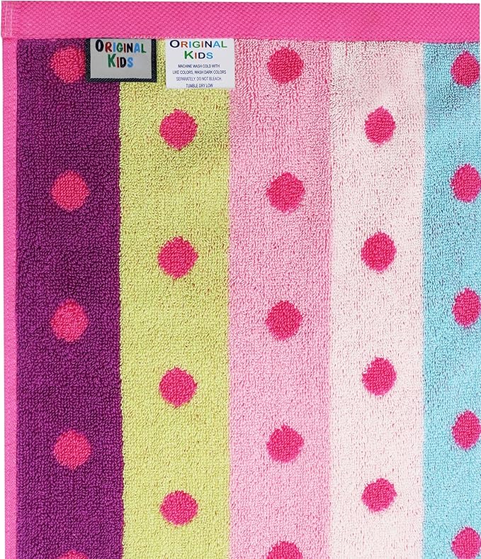 - Sugar and Spice: Your little one will love the colorful polka dots and the surprising candy stripes on the reversible side. In a design both kids and parents will love, this bath towel is perfect for indoor and outdoor use as a bathroom, home, beach, or pool accessory. Large enough to let kids keep this towel wrapped comfortably around them.