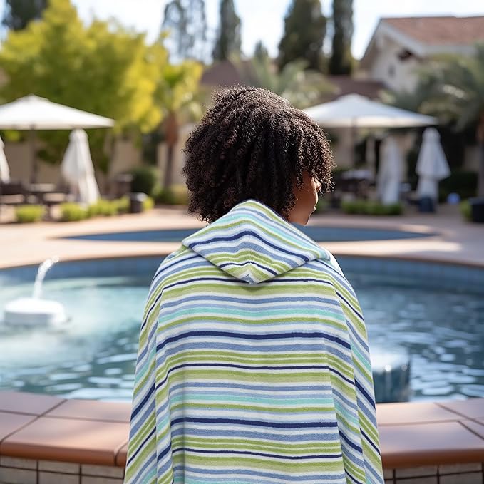 - High-Quality Cotton Bath Towel: The perfect combination of softness, absorbency, and design. The luxurious pile height ensures a fluffy and soft towel through wash cycles. Built to withstand the adventures of childhood, this hooded bath towel with a double-stitched hem with lock-stitched corners is crafted with durability in mind so it will be cherished for years to come. Yarn-dyed multi-stripes produce a brilliant, intense, and vibrant towel that won't fade.