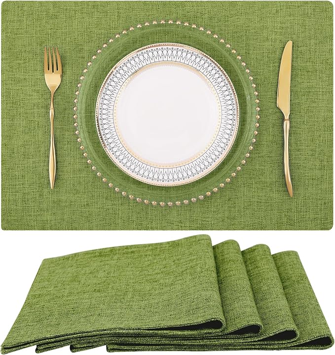 homing Grass Green Cotton Linen Blend Placemats for Dining Table Set of 4 – Washable Farmhouse Kitchen Mats for Indoors & Outdoors, Easy to Clean, 13 x 19 Inch