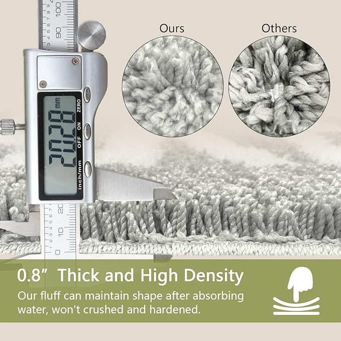 - Heavy & Not Crushed - The luxury bath mat uses high-quality dense microfiber, which is up to 4/5" thick. The fluffy rug can support long-term use and can be used repeatedly after washing. Not easy crushed and is durable.