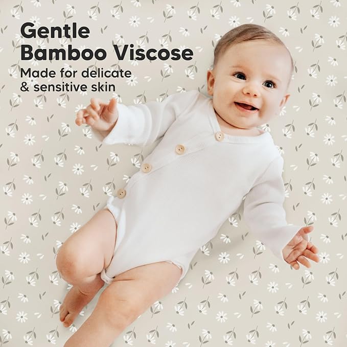 Pack and Play Sheets Fitted, 2-Pack Mini Crib Sheets - Pack N Play Sheets, Organic Fitted Crib Sheet for Pack and Play Mattress, Playard Baby Crib Sheets, Crib Sheets Neutral for Boys (Daisies)