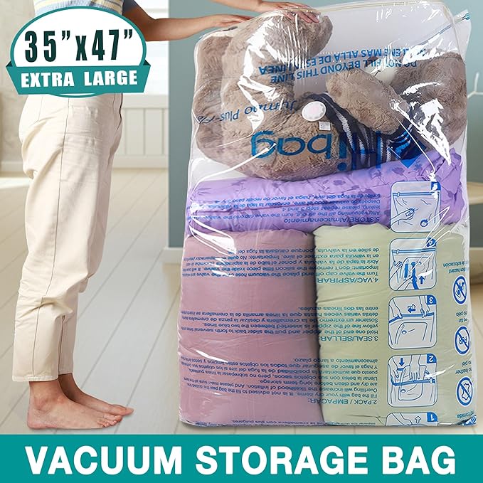 XXL Jumbo Size 47''X35'' Vacuum Storage Space Saver Bags Extra Large for Blanket, Bedding, Comforters (4 Pack)