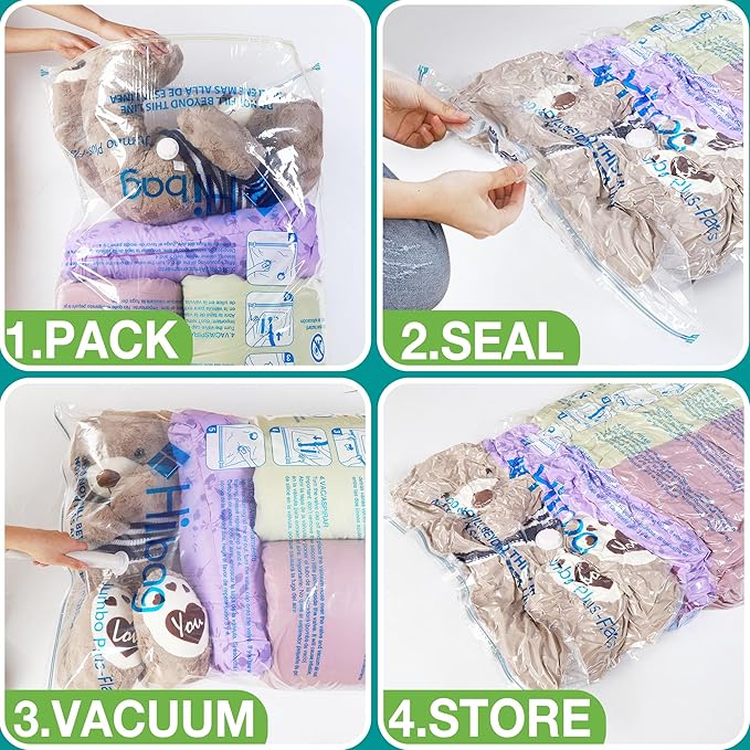 - 【Bedding Storage Bags】with secure vacuum and double zipper design, hibag space bags are a perfect choice for long-term storage and moving. Two colored zippers ensure the bags are securely sealed.