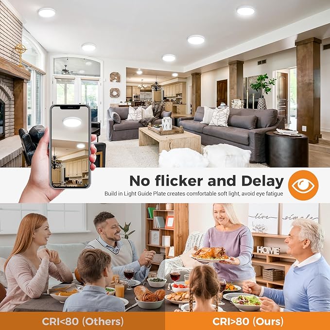 - 【Ultra Thin Design - Fits Perfectly to Ceilings】Our flush mount ceiling light are only 0.94 inches thick, perfect for rooms with low ceilings. The simple and modern rounded design blends perfectly with any interior style and is perfect for living rooms, bathrooms, hallways, kitchens, bedrooms, closet, children's rooms, porch, etc