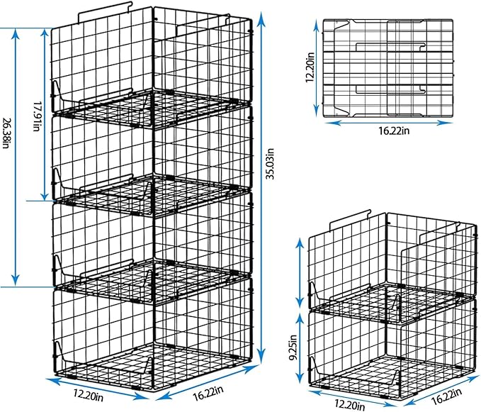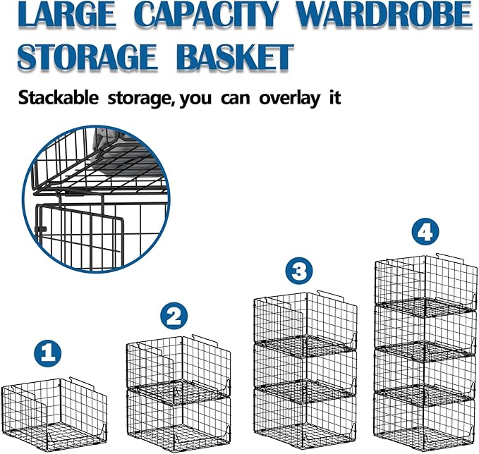 - What you get: --Four wire baskets, easy to follow instructions, stackable and foldable design, organize your closet. If you have any questions, please contact us and we will get back to you within 24 hours.