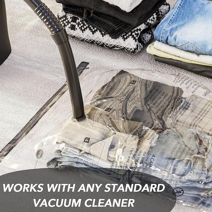 - Easy to Use: Put the items in, zip it up and suck out the air, then close the lid and finish; Works with any standard vacuum cleaner.