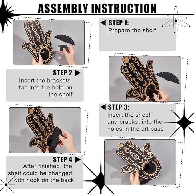 - [APPLICABLE LOCATIONS]: Hamsa Floating Shelf can be used for boho nursery room décor, yoga room or zen décor, meditation, You can also use it for your bedroom, kitchen, room, living room, bathroom, office and so on. Become Fashion-the focal point of any room with crystal organizer, grow spiritually and give with meaning.