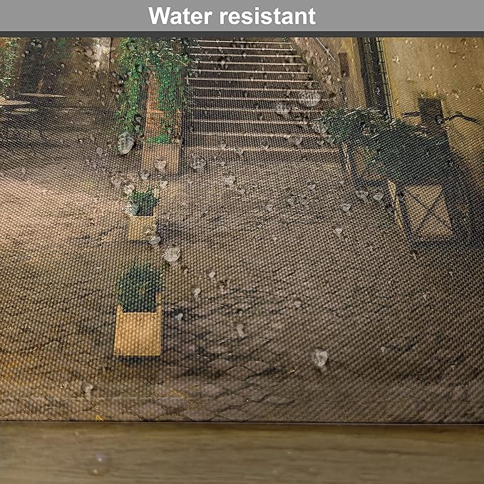 Ambesonne Italian Place Mats Set of 8, Old Courtyard Rome Italy Cafe Chairs City Historic Houses in Street, Washable Fabric Placemats for Dining Table, Placemat 8 pcs, Orange Brown