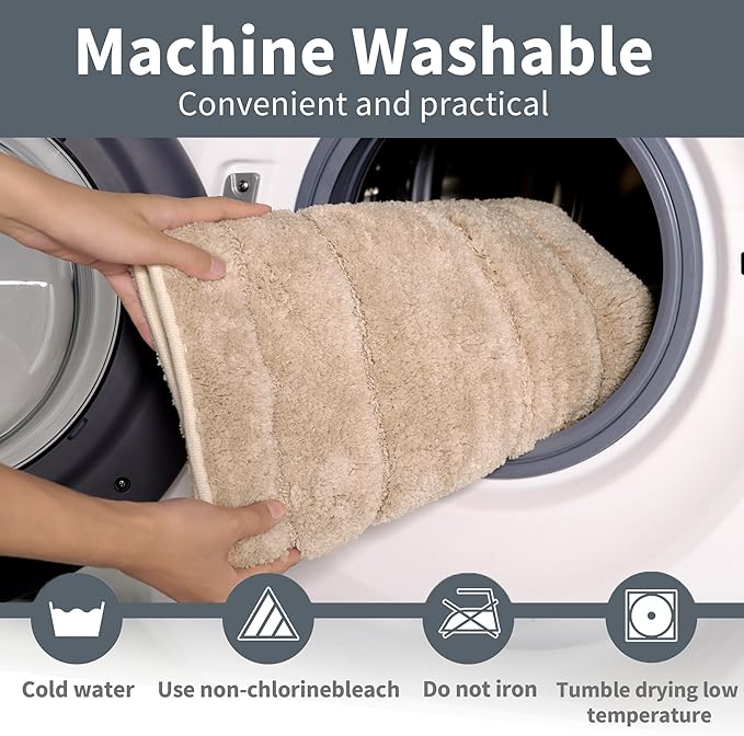 - Machine Washable - Machine wash the bathroom floor mat with cold water and mild detergent. Make sure the dryer is on low heat setting when tumble dry and keep away from chlorine and bleach. After professional testing, the color will remain vibrant after many washes.