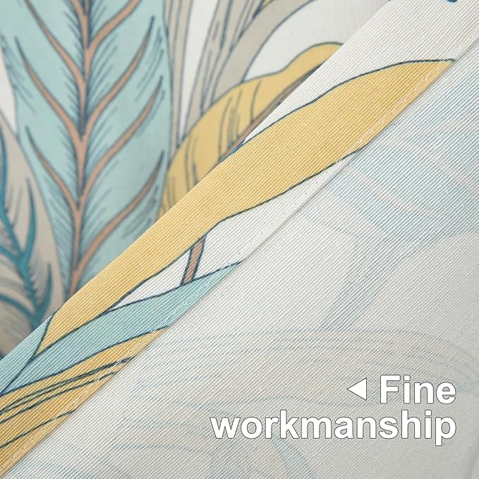 Leeva Leaves Printing Valances for Living Room, 1 Pack Farmhouse Style Small Curtains for Windows 18 Inch Length, Rod Pocket, Lake Blue, 52 x 18