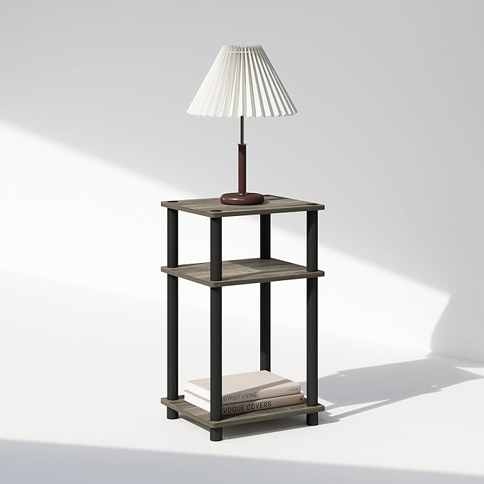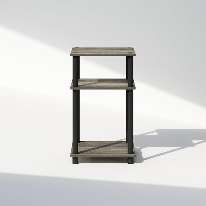 Furinno Just 3-Tier Turn-N-Tube Open Storage Nightstand, 1-Pack, Plastic Poles, French Oak/Black